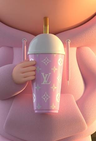 This work represents a kid cup with a Parisian landscape with the Eiffel Tower in the background. This Kid Cup sits on a set of Louis Vuitton trunks, the symbol of Parisian luxury par excellence.